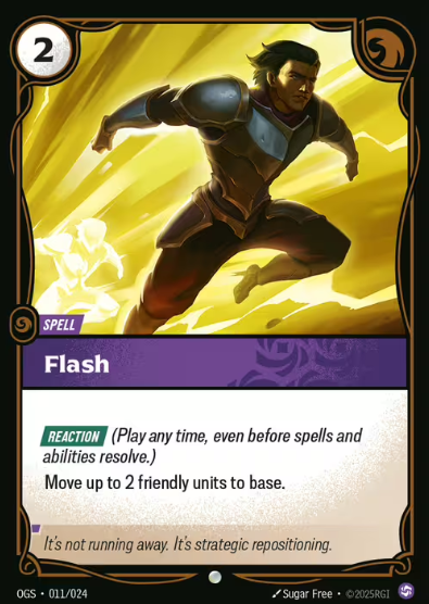 If Riftbound leans into battlefield-specific combat phases, Flash becomes even more valuable for tempo swing decks or soft control archetypes.