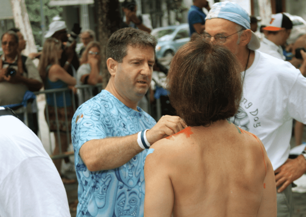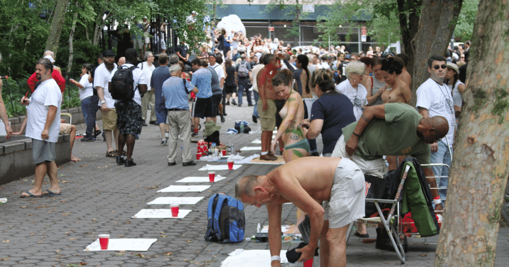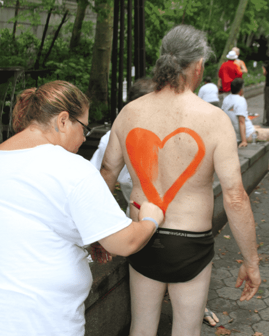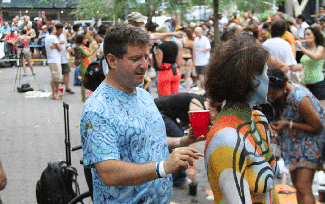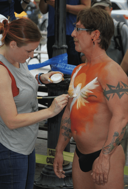 King of the body painting world, Andy Golub has pulled it off once again, breaking all kinds of records for previous “group outings,” this time with 100 fully nude models and 80 artists painting on this year’s theme “What The World Needs Now.”