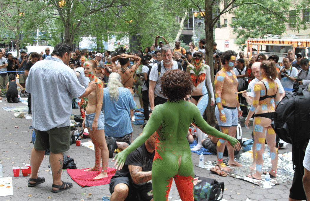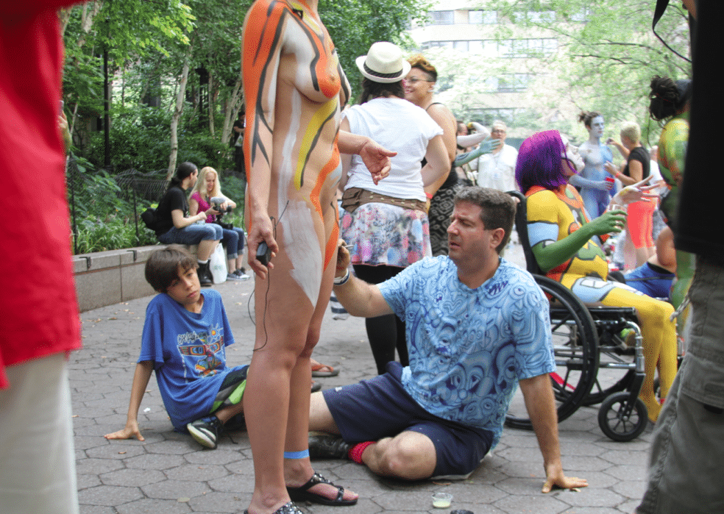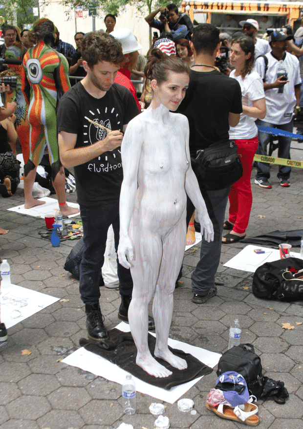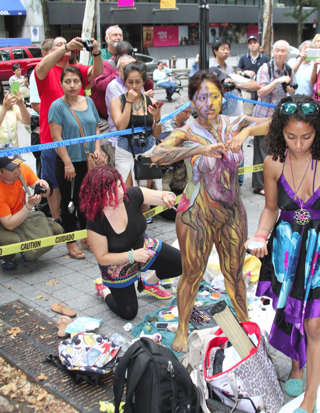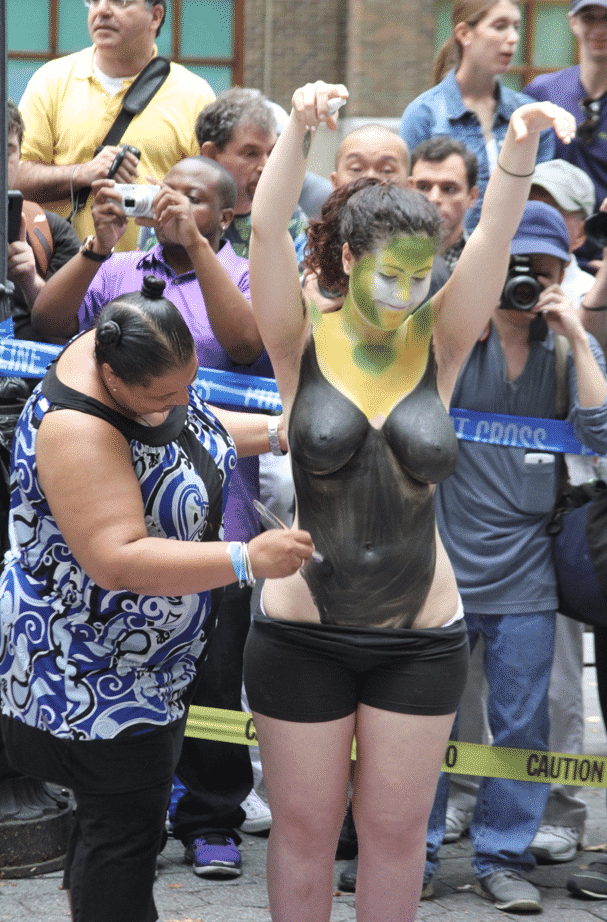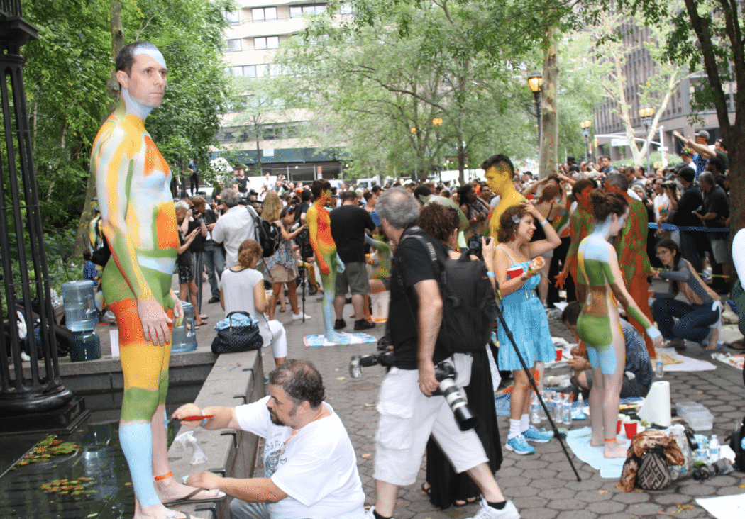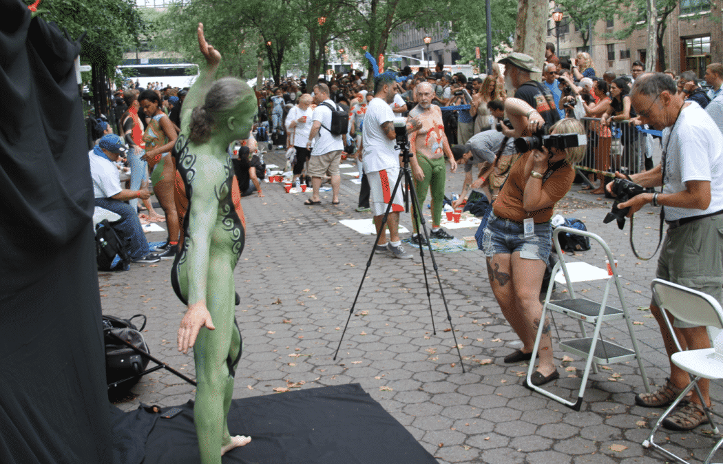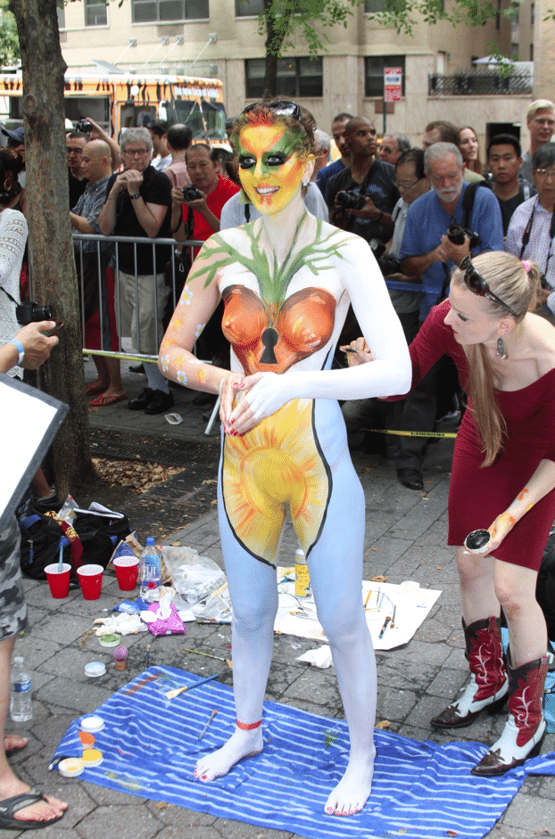 On Saturday Dag Hammarskjold Plaza on 47th Street and 2nd Avenue in Manhattan came alive with body paint, camera shutters, simulated camera shutters (on smart phones), and a literal ton of bare skin, for the second ever Bodypainting Day.