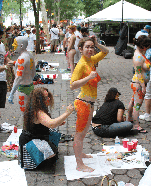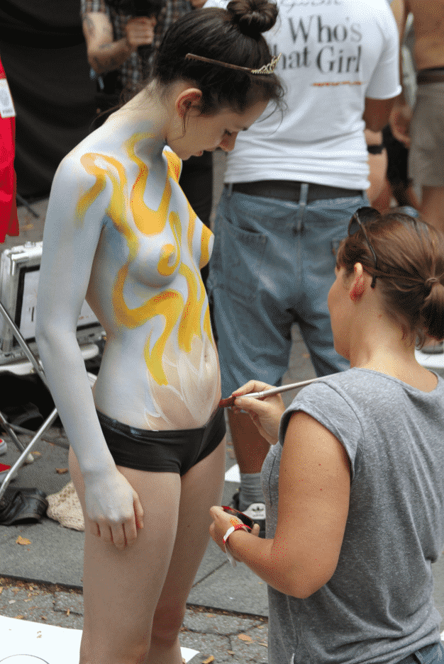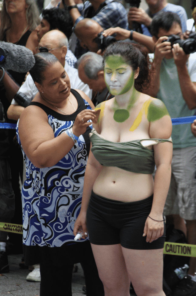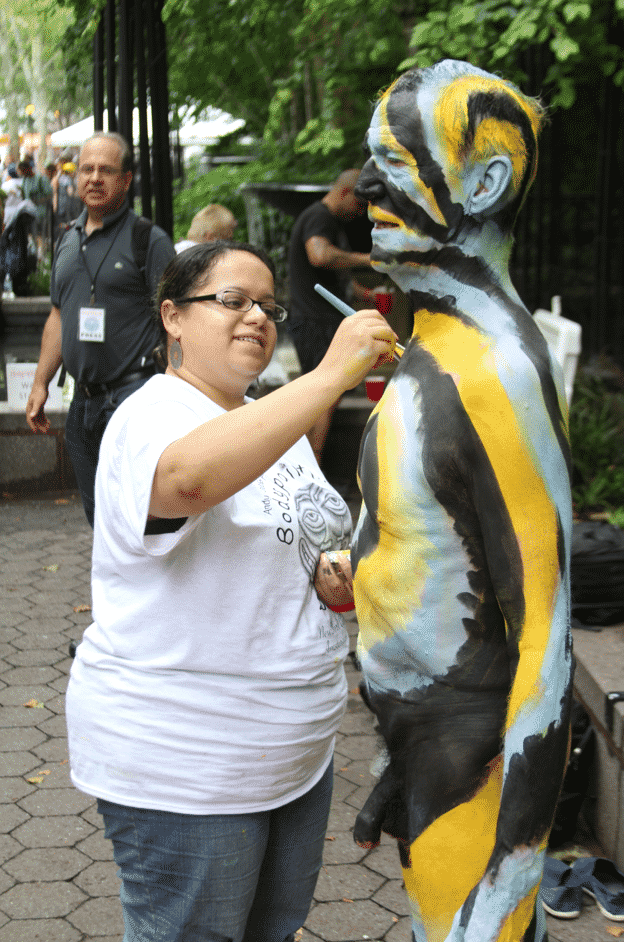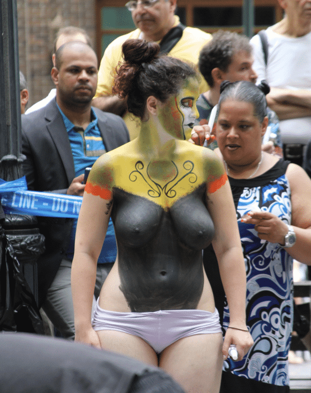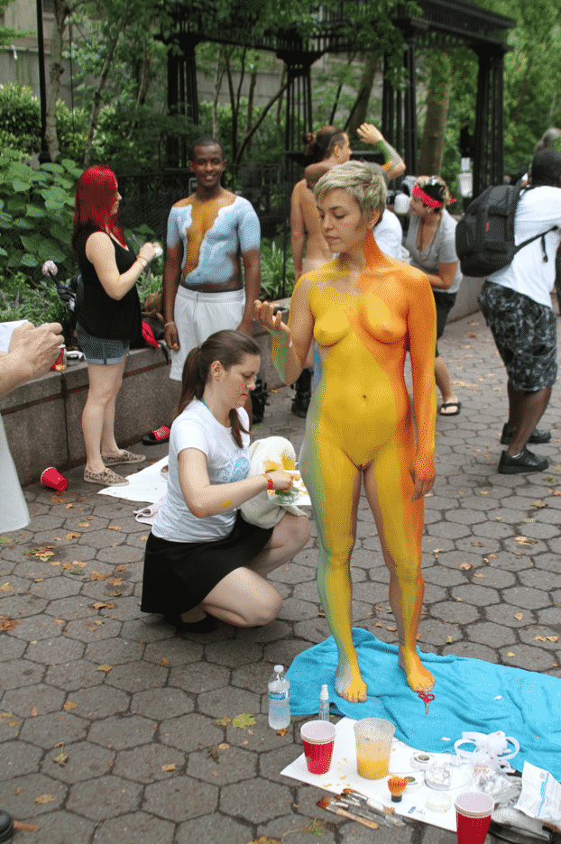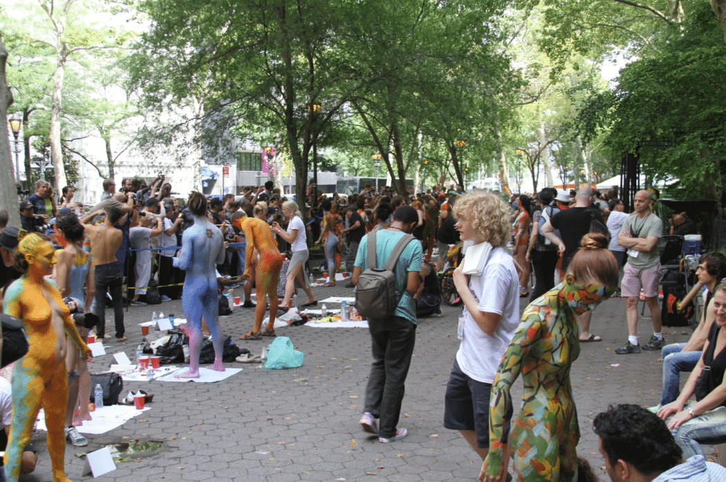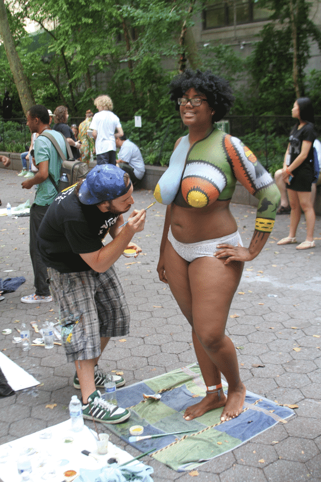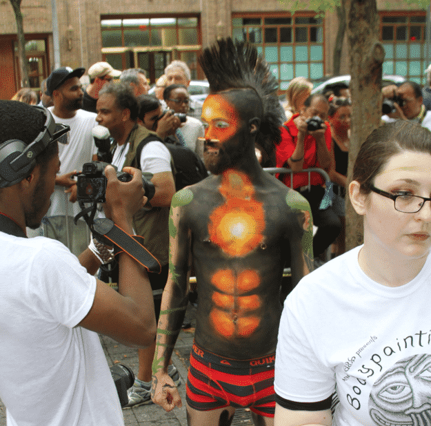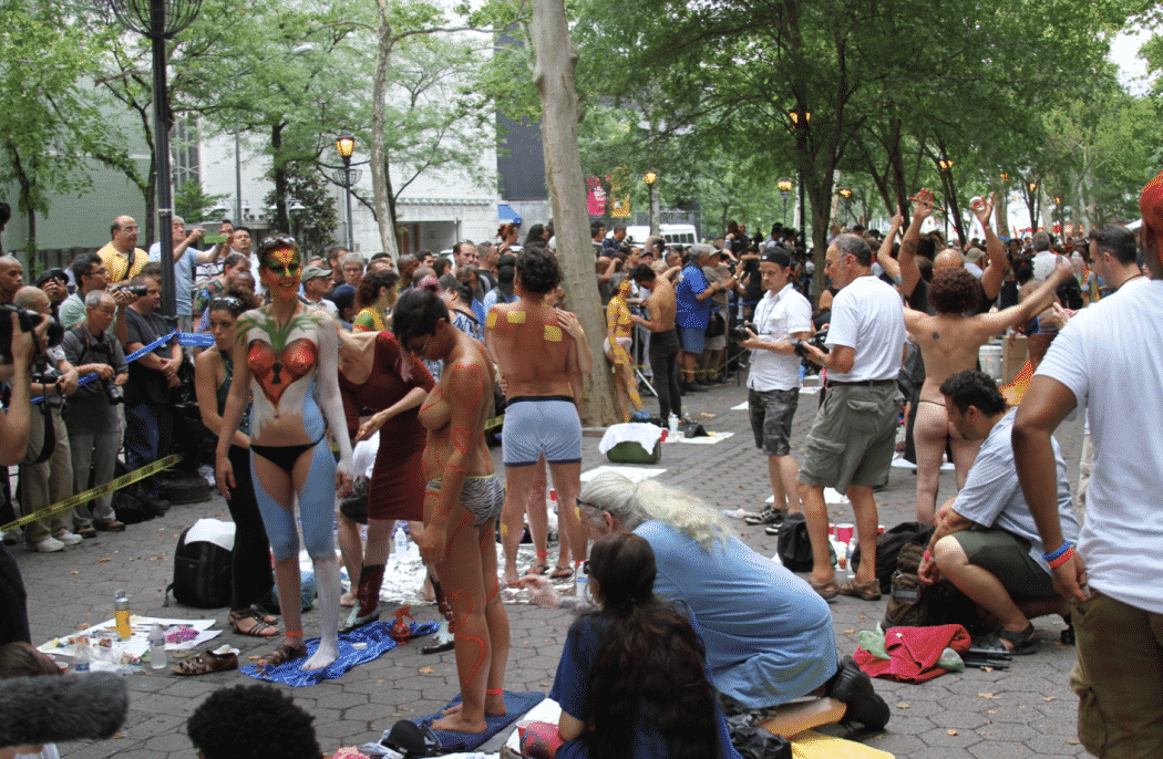 On Saturday Dag Hammarskjold Plaza on 47th Street and 2nd Avenue in Manhattan came alive with body paint, camera shutters, simulated camera shutters (on smart phones), and a literal ton of bare skin, for the second ever Bodypainting Day.