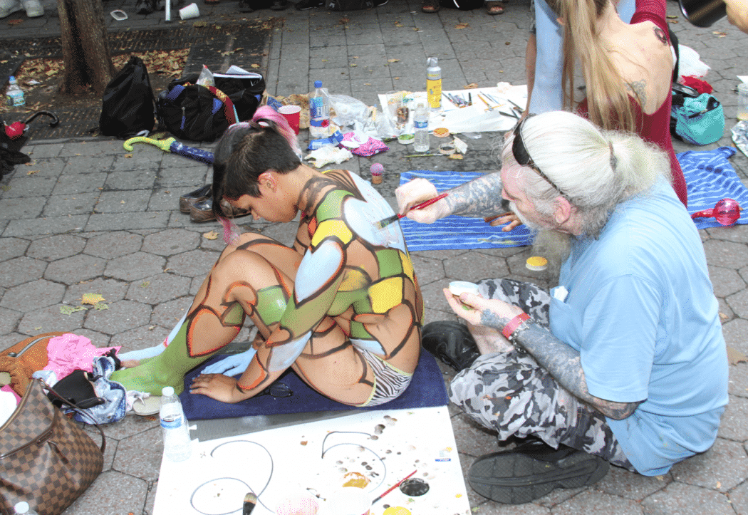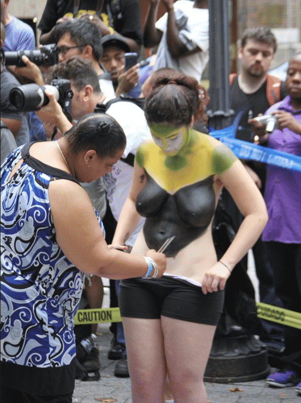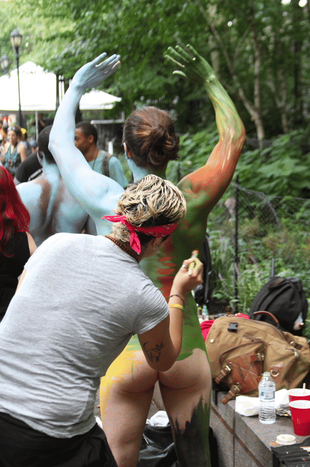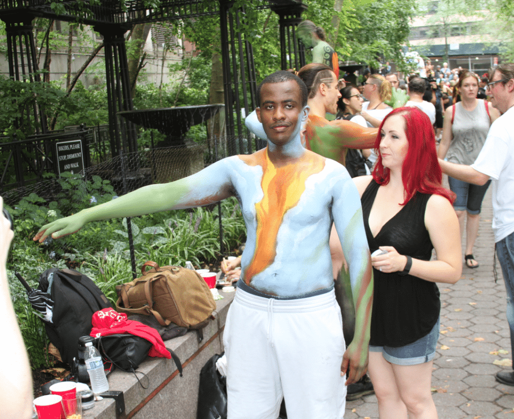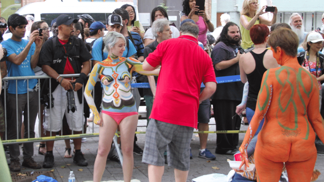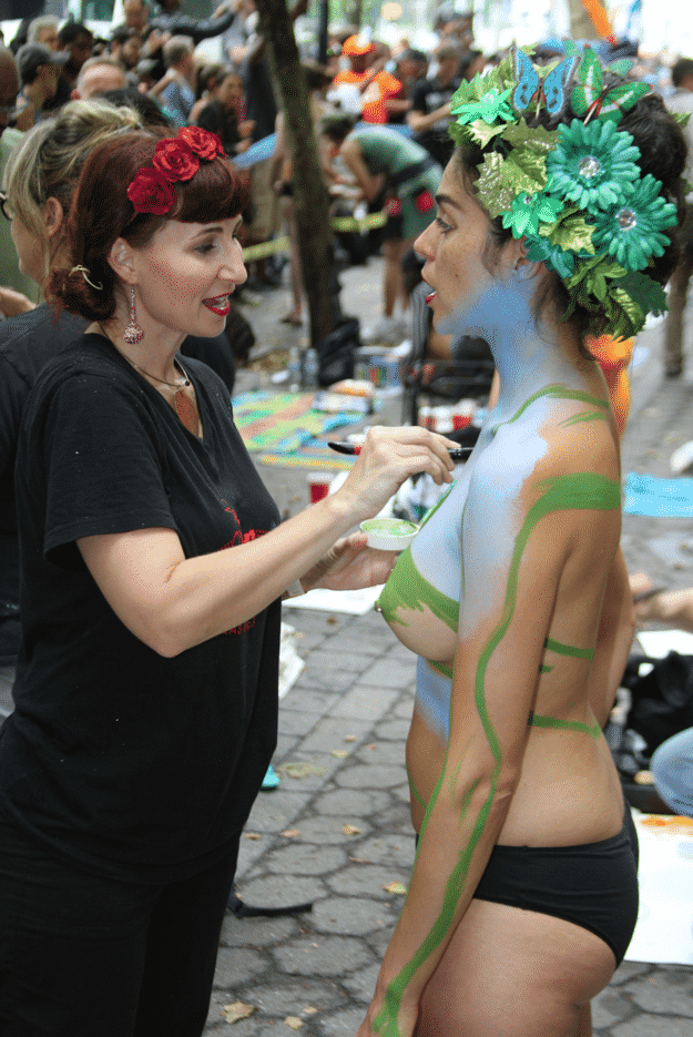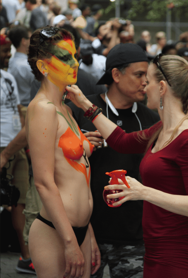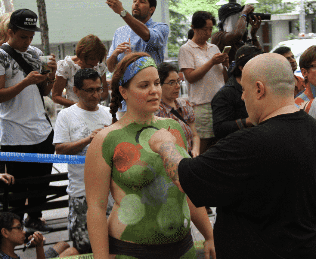 On Saturday Dag Hammarskjold Plaza on 47th Street and 2nd Avenue in Manhattan came alive with body paint, camera shutters, simulated camera shutters (on smart phones), and a literal ton of bare skin, for the second ever Bodypainting Day.