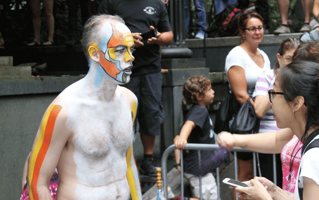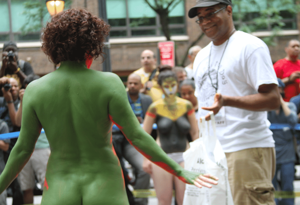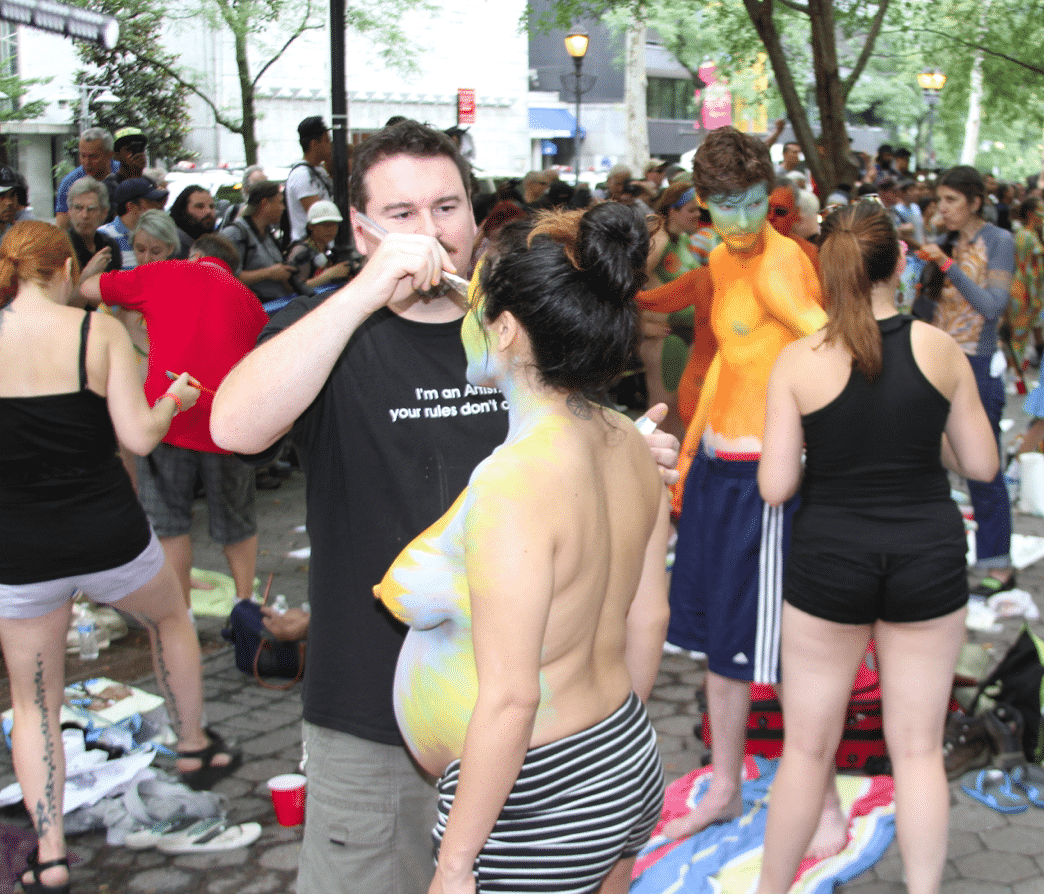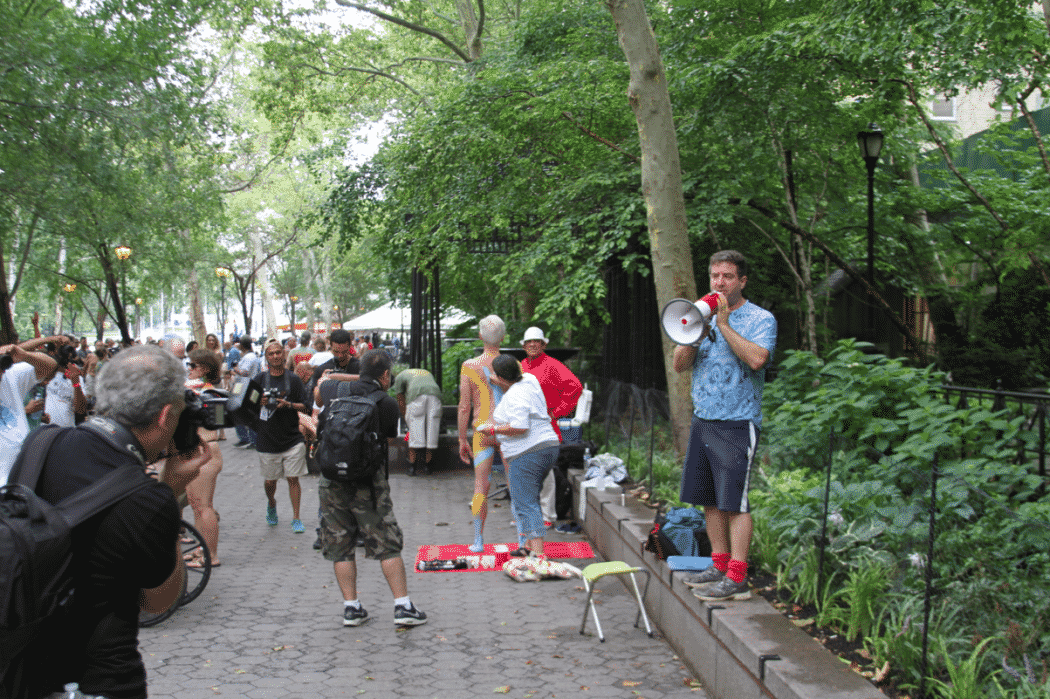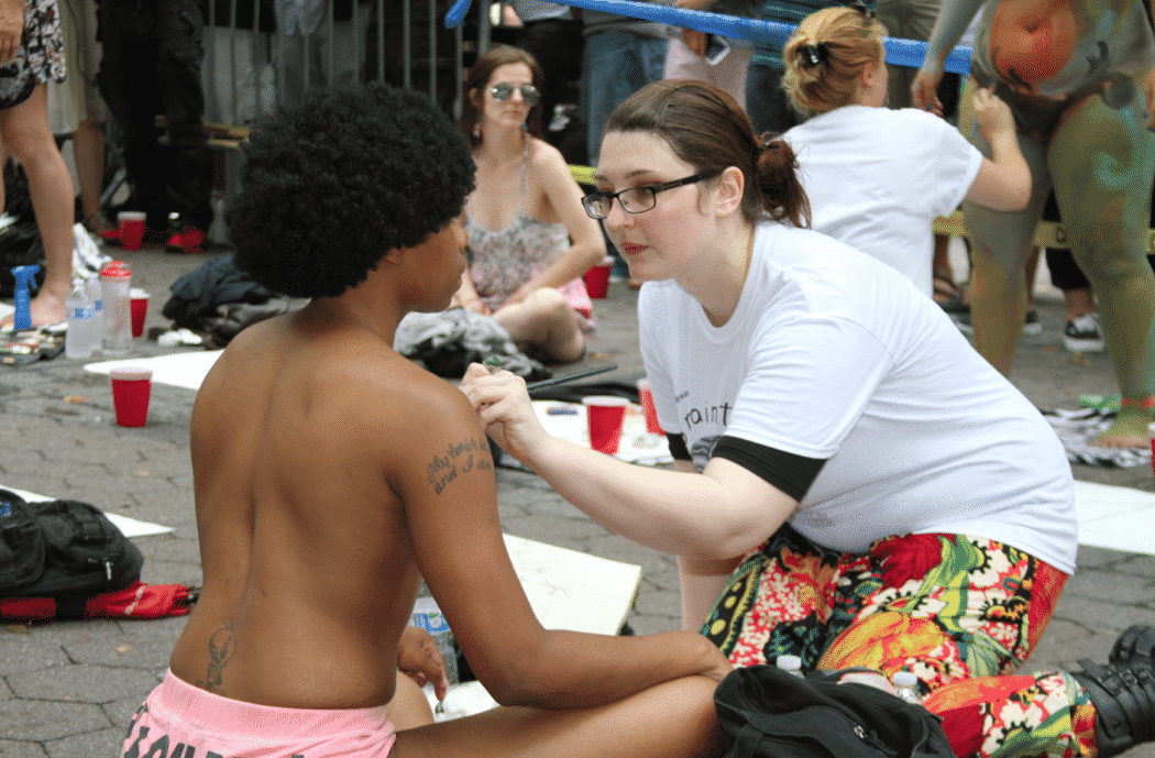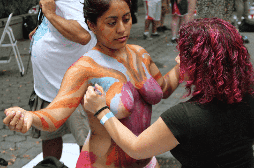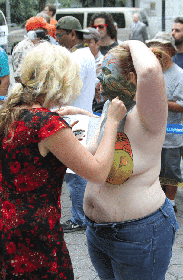 On Saturday Dag Hammarskjold Plaza on 47th Street and 2nd Avenue in Manhattan came alive with body paint, camera shutters, simulated camera shutters (on smart phones), and a literal ton of bare skin, for the second ever Bodypainting Day.