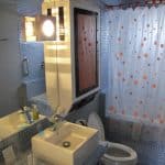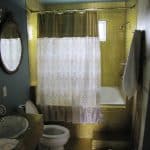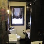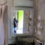 Although the sink wasn’t linear, the color scheme and translucent natural patterns worked with the overall design of the room.