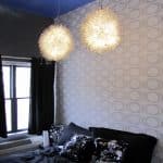 We were surprised to find that some of the color fields on the wall at the head of the bed had dimension to them.
