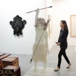 Speaking of eyes, the sculptural piece called Watch Tower caught me. It is made up of six wooden baby blocks, each carrying a lovely female eye, underneath a smart brow.