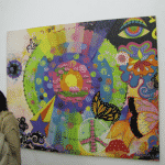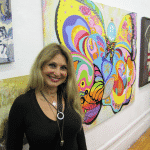 Her artwork, she describes, favors the colors, with their volumes and symbols, where there is harmony between the point and understanding.” She doesn’t speak English fluently, but she radiated a peaceful and benevolent vibration