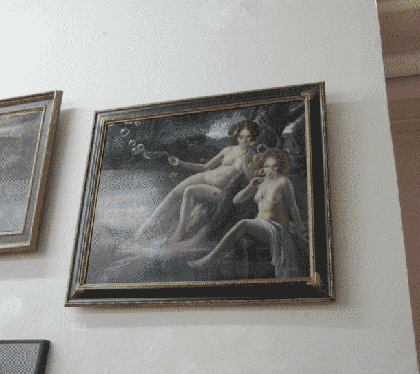 There was also David M. Bowers, whose work was reminiscent of the early Renaissance painters, with qualities of realism, and a skill of conveying the illusion of real flesh and subject matters. His work was humorous, seductive, and incredibly skillful. He had two paintings on display, and they will awe you in their ability to convey realistic imagery, with a touch of fantasy.