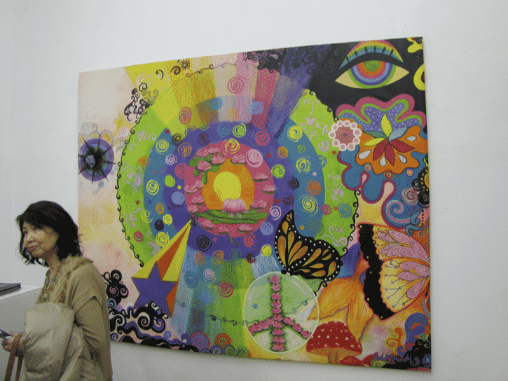 Another artist, Paola Frisoli, had two large vibrant paintings on display. Frisoli takes you into her colorful world, and you quickly realize that she wants to bring simply happiness to the viewer in a playful and childlike manner. She has come all the way from Sao Paulo, Brazil.