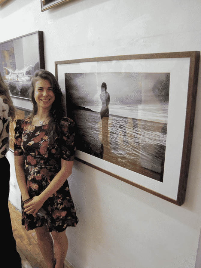 An artist that particularly caught my attention was Loreal Prystaj. Her work on display was a dramatic black and white photograph with a gorgeous composition. This piece showed the back of a woman, gazing out into the horizon of a vast body of water.